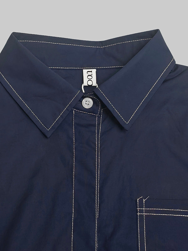 Long Sleeves Loose Buttoned Pockets Solid Color Lapel Midi Dresses